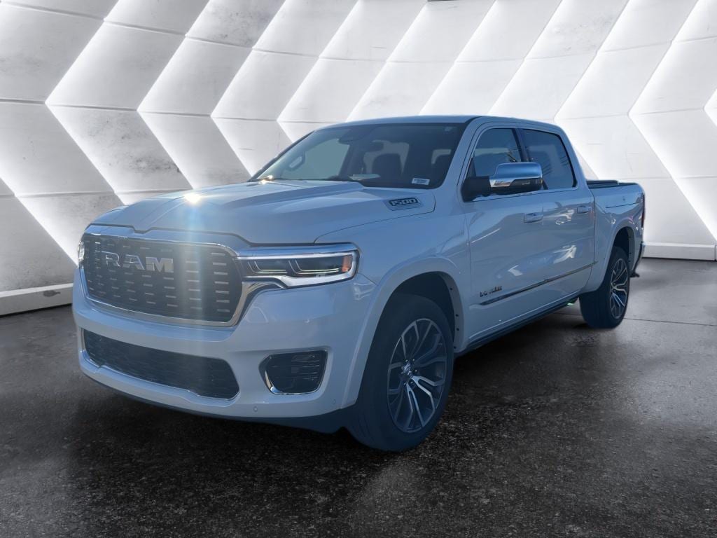 The vehicle offers Apple CarPlay for seamless connectivity. Start this 2026 Ram 1500 from inside with remote start. This Ram 1500 is pure luxury with a heated steering wheel. This Ram 1500 features a hands-free Bluetooth phone system. See what's behind you with the back up camera on the Ram 1500. The installed navigation system will keep you on the right path. The leather seats in this unit are a must for buyers looking for comfort, durability, and style. The Ram 1500 has automated speed control that adjusts to maintain a safe following distance, enhancing highway driving convenience. This unit comes equipped with Android Auto for seamless smartphone integration on the road. This 1/2 ton pickup has a 6 Cyl, 3.0L high output engine. A trailer braking system is already installed on this Ram 1500. The vehicle shines with clean polished lines coated with an elegant white finish. When you encounter slick or muddy roads, you can engage the four wheel drive on this vehicle and drive with confidence.Big enough to tow or haul, the vehicle has the space, power and durability for anyone. The vehicle has four wheel drive capabilities. This vehicle has automated speed control that adjusts to maintain a safe following distance, enhancing highway driving convenience. It offers Android Auto for seamless smartphone integration. It offers Apple CarPlay for seamless connectivity. The vehicle has an automatic transmission. Protect this model from unwanted accidents with a cutting edge backup camera system. Easily set your speed in it with a state of the art cruise control system. Increase or decrease velocity with the touch of a button. The vehicle has a 6 Cyl, 3.0L high output engine. Enjoy the tried and true gasoline engine in this 1/2 ton pickup. Bluetooth technology is built into this unit, keeping your hands on the steering wheel and your focus on the road. This 2026 Ram 1500 is pure luxury with a heated steering wheel. The leather seats in the vehicle are a must for buyers looking for comfort, durability, and style. With the adjustable lumbar support in the Ram 1500 your back will love you. The installed navigation system will keep you on the right path. Start this 2026 Ram 1500 from inside with remote start. A trailer braking system is already installed on the Ram 1500. This unit shines with clean polished lines coated with an elegant white finish.