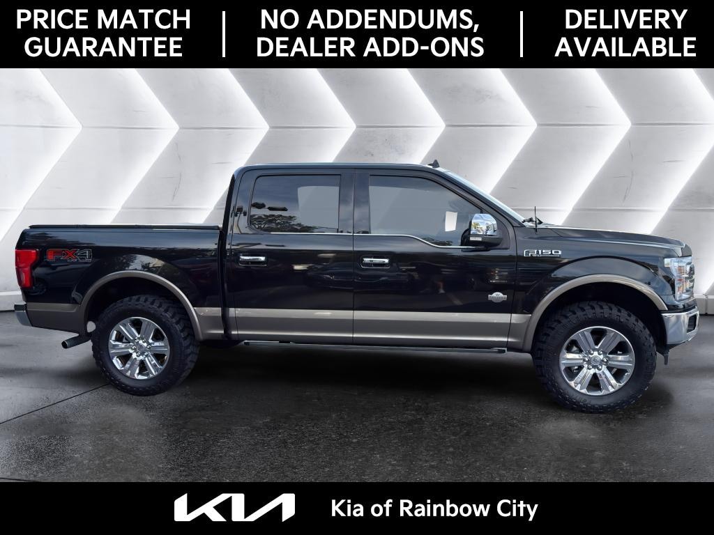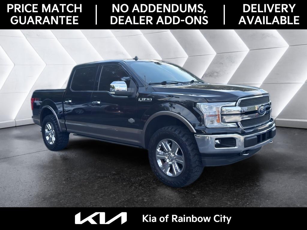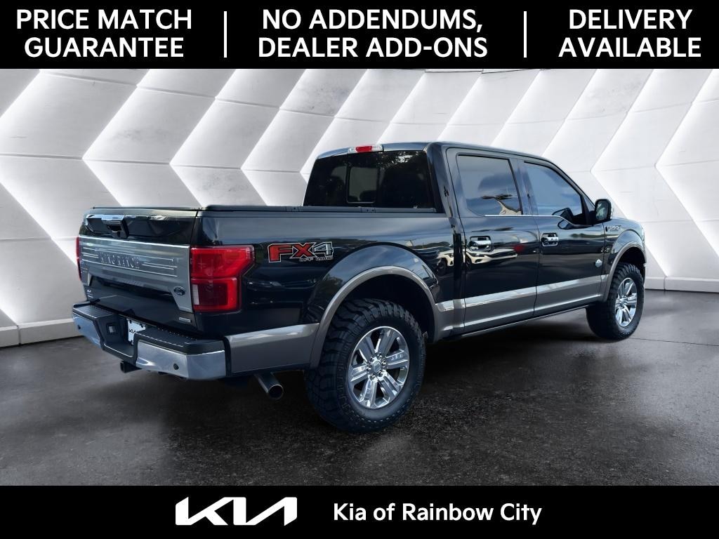 KING RANCH CHROME APPEARANCE: Chrome Door Handles with Body-Color Strap; Chrome Front and Rear Bumpers; Bright Belt Moldings; P275/55R20 OWL A/T Tires; 20 Chrome-Like PVD Wheels; Chrome Skull Caps on Exterior Mirrors. Equipment Group 601A Luxury: ELEC 10-SPEED AUTO W/TOW MODE; Power-Deployable Running Boards; 7. 000 lbs Payload Package GVWR; King Ranch Leather Bucket Seats; B&O Sound System by Bang and Olufsen; Tailgate Step with Tailgate Lift Assist; P275/55R20 OWL A/T Tires; Inflatable Rear Safety Belts; Blind Spot Information System (BLIS); Multi-Contour Driver and Passenger Seats. MAX TRAILER TOW PACKAGE: Pro Trailer Backup Assist; Integrated Trailer Brake Controller; 3.55 ELECTRONIC LOCK RR AXLE; Class IV Trailer Hitch Receiver; Extended Range 36 Gallon Fuel Tank; Engine Oil Cooler; Upgraded Front Stabilizer Bar. FX4 OFF-ROAD PACKAGE: Off-Road Tuned Front Shock Absorbers; Skid Plates; 4x4 FX4 Off-Road Bodyside Decal; Hill Descent Control; Tray Style Floor Liner. Twin Panel Moonroof. Tough Bed Spray-In Bedliner. Electronic Locking with 3.55 Axle Ratio. Extended Range 36 Gallon Fuel Tank. Tailgate Step with Tailgate Lift Assist. Skid Plates. Tray Style Floor Liner. **Equipment listed is based on original vehicle build and subject to change. Please confirm the accuracy of the included equipment by calling the dealer prior to purchase.**