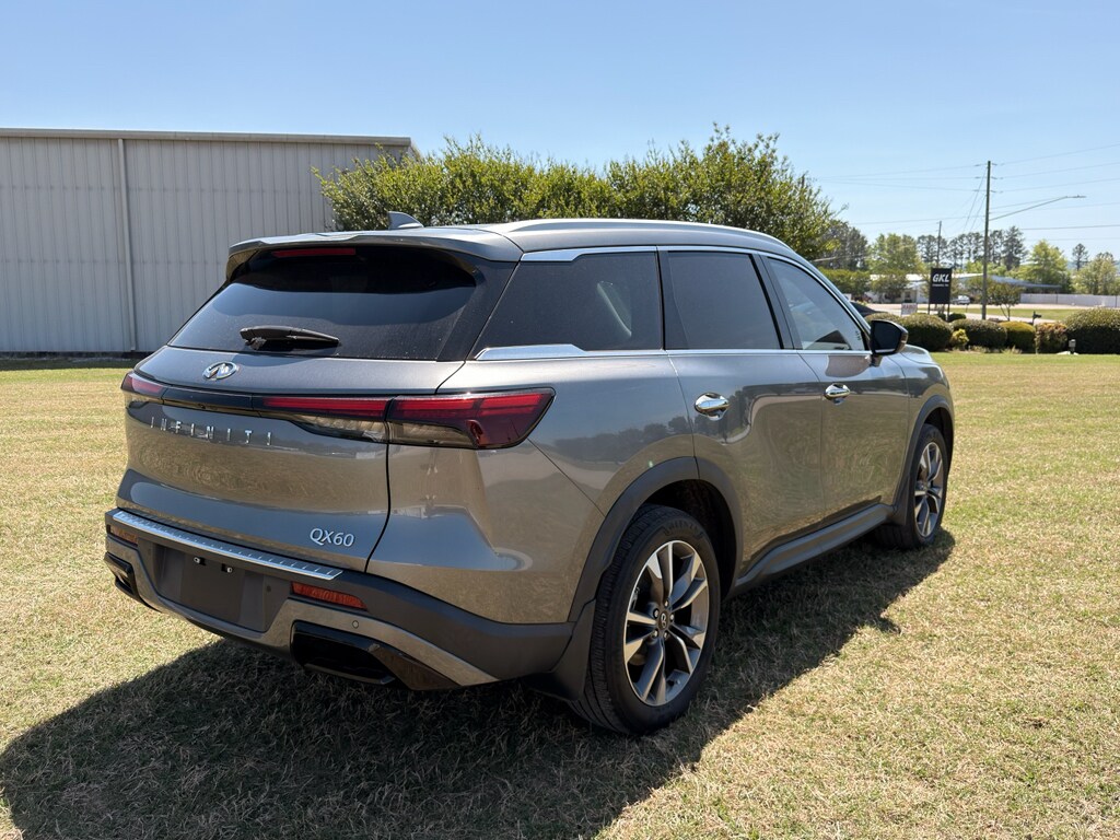 2023 INFINITI QX60 LUXE - Low-Mileage Luxury SUV in Gadsden, AL Experience refined driving with this 2023 INFINITI QX60 LUXE, a low-mileage example with just 25,461 miles and a smooth V6 3.5L gasoline engine paired with front-wheel drive. Ideal for families and commuters seeking comfort and reliable performance, this INFINITI QX60 blends premium features with practical efficiency. Highlights and Features: - Low mileage: 25,461 miles - offers many years of dependable service. - Powertrain: V6 3.5L gasoline engine with FWD for confident handling and a composed ride. - Safety: Forward Collision Warning helps you stay aware on busy roads. - Technology: XM Radio keeps you entertained on long drives. - Convenience: Back-Up Camera assists with parking and maneuvering in tight spots. - Comfort: Heated Steering Wheel adds warmth and luxury during cooler months. - Vehicle history: CARFAX Clean Report for added peace of mind. Located in Gadsden, AL, this INFINITI QX60 LUXE is ready for test drives and immediate delivery. The well-maintained interior, thoughtful amenities, and advanced safety systems make it a top choice for buyers seeking upscale features without the new-car depreciation. Contact us today to schedule a viewing and experience this exceptional low-mileage INFINITI in person.