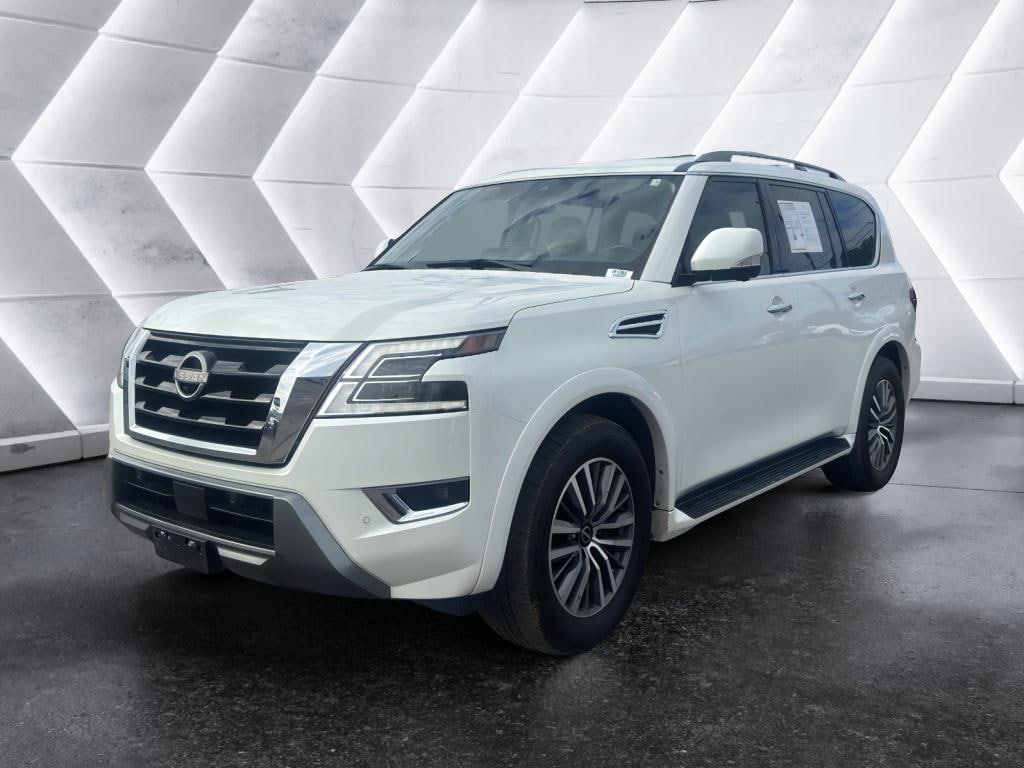 Discover exceptional value with this 2023 Nissan Armada SL, located in Corinth, MS. With only 29,536 miles and a powerful 5.6L V8 gasoline engine paired with 4WD, this full-size SUV delivers confident towing capability, smooth highway performance, and rugged versatility for family adventures or work demands. The SL trim combines premium comfort and advanced technology, featuring leather seats, heated front seating, and a refined cabin designed for long drives. Equipped with an intuitive navigation system, you'll enjoy effortless route guidance whether commuting or exploring new destinations. Safety is prioritized with Forward Collision Warning and other active driver-assist features that enhance on-road confidence. Start your engine remotely on cold mornings or hot afternoons using Remote Start, adding convenience to your daily routine. This Nissan Armada comes with a CARFAX Clean Report, giving you peace of mind about its history and condition. Priced to sell, this Nissan Armada offers the best price in the area for a low-mileage, well-equipped V8 4WD SUV. Whether you need a spacious three-row vehicle for family trips or a capable tow vehicle, this Nissan Armada SL is an attractive, budget-smart choice. Visit our Corinth, MS location to see this low-mileage 2023 Nissan Armada SL and test drive the best-priced Nissan Armada available today.