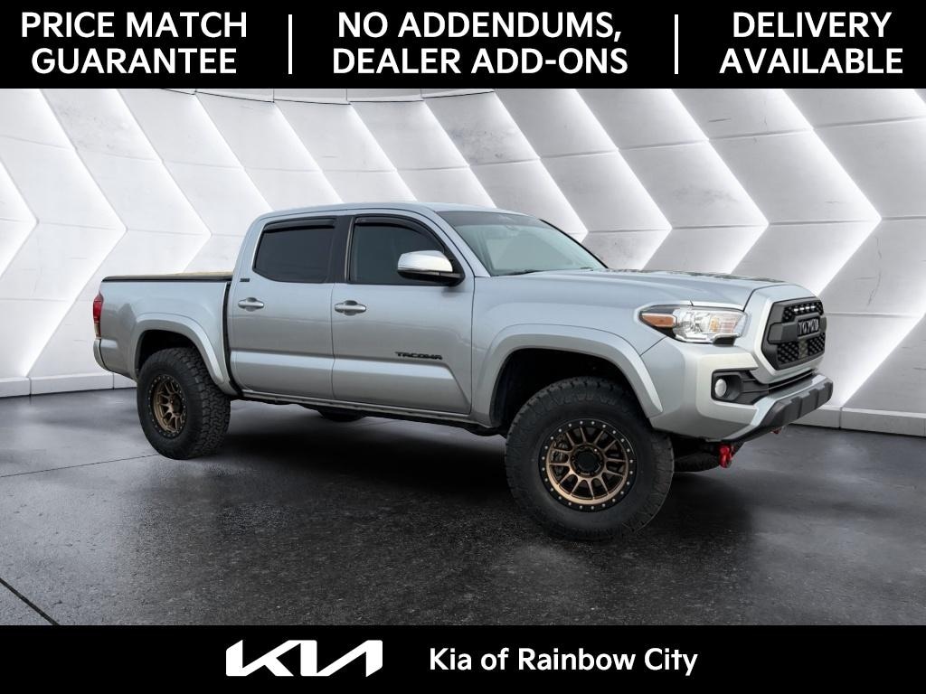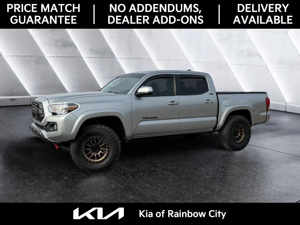 This vehicle offers Android Auto for seamless smartphone integration. This Toyota Tacoma offers Apple CarPlay for seamless connectivity. It offers Automatic Climate Control for personalized comfort. Protect the vehicle from unwanted accidents with a cutting edge backup camera system. This small pickup enhances safety with a blind spot monitor, alerting drivers to potential dangers in adjacent lanes. The vehicle warns of approaching vehicles with Cross-Traffic Alert. This unit has a clean CARFAX vehicle history report. The Toyota Tacoma features a hands-free Bluetooth phone system. This model has a V6, 3.5L high output engine. This vehicle shines with an exquisite metallic silver exterior finish. Set the temperature exactly where you are most comfortable in this vehicle. The fan speed and temperature will automatically adjust to maintain your preferred zone climate. This unit has four wheel drive capabilities. It has fog lights for all weather conditions. It is accented with premium quality alloy wheels.
